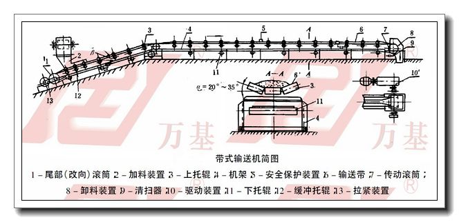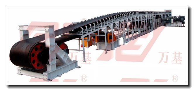 帶式輸送機是一種摩擦驅動(dòng)以連續方式運輸物料的機械。主要由機架、輸送帶、托輥、滾筒、張緊裝置、傳動(dòng)裝置等組成。它可以將物料在一定的輸送線(xiàn)上,從最初的供料點(diǎn)到最終的卸料點(diǎn)間形成一種物料的輸送流程。它既可以進(jìn)行碎散物料的輸送,也可以進(jìn)行成件物品的輸送。除進(jìn)行純粹的物料輸送外,還可以與各工業(yè)企業(yè)生產(chǎn)流程中的工藝過(guò)程的要求相配合,形成有節奏的流水作業(yè)運輸線(xiàn)。