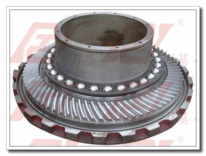 ◆由于傳動(dòng)平穩、噪聲小,承載能力高,錐齒輪副多采用螺旋錐齒輪。轉臺裝置是轉盤(pán)用以輸出轉速和扭矩的旋轉件,轉臺裝置由主軸承支承在底座內,主軸承采用主輔一體式結構的角接觸推力球軸承,既可承受最大鉆柱和套管柱負荷,也可承受鉆井和起下鉆時(shí)來(lái)自井下向上的沖擊負荷,結構緊湊。